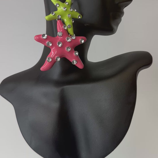 Make waves with these vibrant starfish statement earrings! 🌊✨ Inspired by high-fashion Zara designs, these earrings feature playful starfish in bright coral, lime, and lilac hues, each embellished with sparkling rhinestones for a touch of glam.