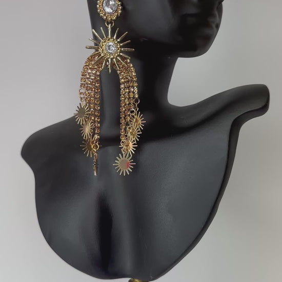 Step into the light and let your style radiate with these gorgeous golden statement earrings.